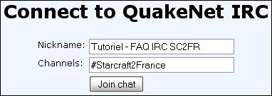 2 - A partir de votre navigateur dans une nouvelle fenêtre ou un nouvel onglet grâce à l'adresse http://webchat.quakenet.org/?channels=Starcraft2France