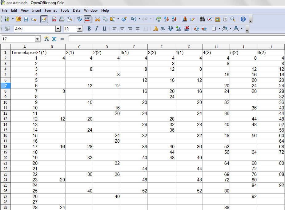 Alors, naturellement, cela a une influence vraiment différente en termes de teching, mais laissant des options intéressantes. Ces modifications ont rendue plus sensible la récolte de gaz qui dans Brood War se faisait en enlevant et en remettant de temps en temps les mineurs sur les geysers. Cela réduisait fortement la vitesse de récolte, et ce n’était vraiment qu’avec une bonne raison que des récolteurs étaient retirés du gaz. Cependant, dans Brood War, durant plus ou moins tout le long du jeu, la récolte du gaz pouvait s’effectuer à deux vitesses : très élevée ou nulle. Oui, les Terrans envoyaient des SCVs au tout début, mais la majorité des matchs voyaient uniquement 3 récolteurs aller sur le gaz une fois le bâtiment de récolte construit. Mais ce n’est pas le cas dans SC2. Il y a des débats sur le montant à investir et sur le moment où investir dans le gaz et sur la meilleure combinaison de ressources à utiliser. Pour ce faire, J’ai réalisé une analyse détaillée des taux de récoltes du gaz avec 9 combinaisons possibles (à comprendre raisonnables) en ce qui concerne la récolte de gaz en fonction du nombre de geysers exploités (entre parenthèse) et en fonction du nombre de mineurs. Mon analyse est réduite dans sa portée car elle se limite à des tests effectués avec les Terrans sur la carte Lost Temple à l’emplacement situé à 6h, même si je soupçonne fortement qu’il y ait une équité entre les races en ce qui concerne la vitesse de récolte du gaz. Bien sur, pour simplifier mon analyse, je suppose que ce sont des geysers standard et qu’il n’y a aucune différence dans la vitesse de récolte du gaz entre les races. Il y a de plus d’autres sources d’erreurs comme par exemple les emplacements de départs non-uniformes des geysers, mais tout cela est normé par le grand nombre de données obtenues et par la nature absolue de la récolte de gaz. Ainsi, grâce à une régression linéaire, nous pouvons établir une approximation de la vitesse de récolte du gaz d’une méthode, mais aussi, ce qui est encore plus important, nous pouvons déterminer sa relation avec les autres méthodes de récolte du gaz. Dans l'image ci-dessous vous avez le tableau de donnée brute. Si d’autres personnes veulent analyser les replays grâce auxquels j’ai pu récupérer ces données, je peux aussi les publier.