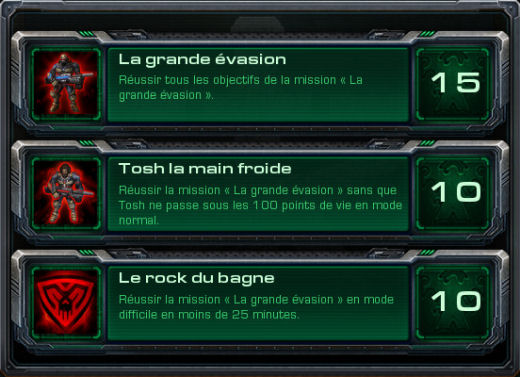 Liste des hauts-faits à réaliser durant cette mission.