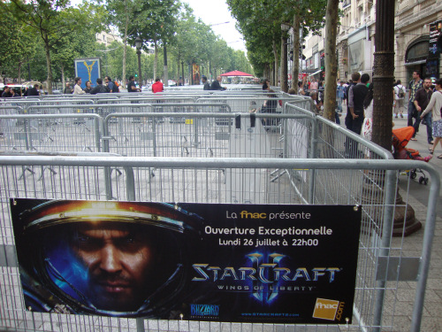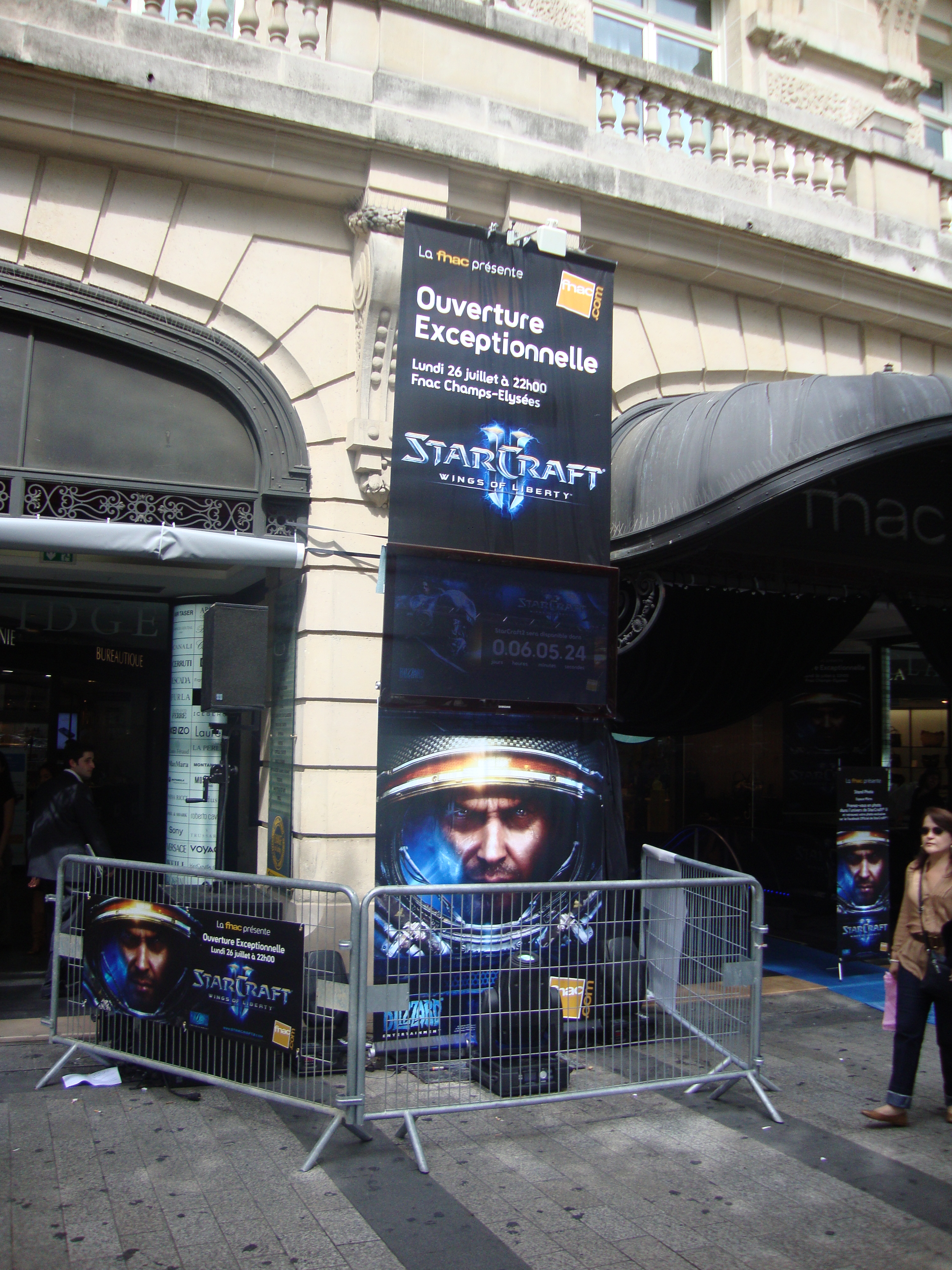 21h59, la foule, puisque maintenant c’en est une, est en délire. Les gens crient, sautent, hurlent. Tout le monde est surexcité, et se tiens près à courir tel un zergling vers la Fnac des Champs Elysées, véritable sanctuaire de SC2 pour la soirée. 10… 9… 8… 7… 6… 5… 4… 3… 2… 1… ! C’EST PARTIT !