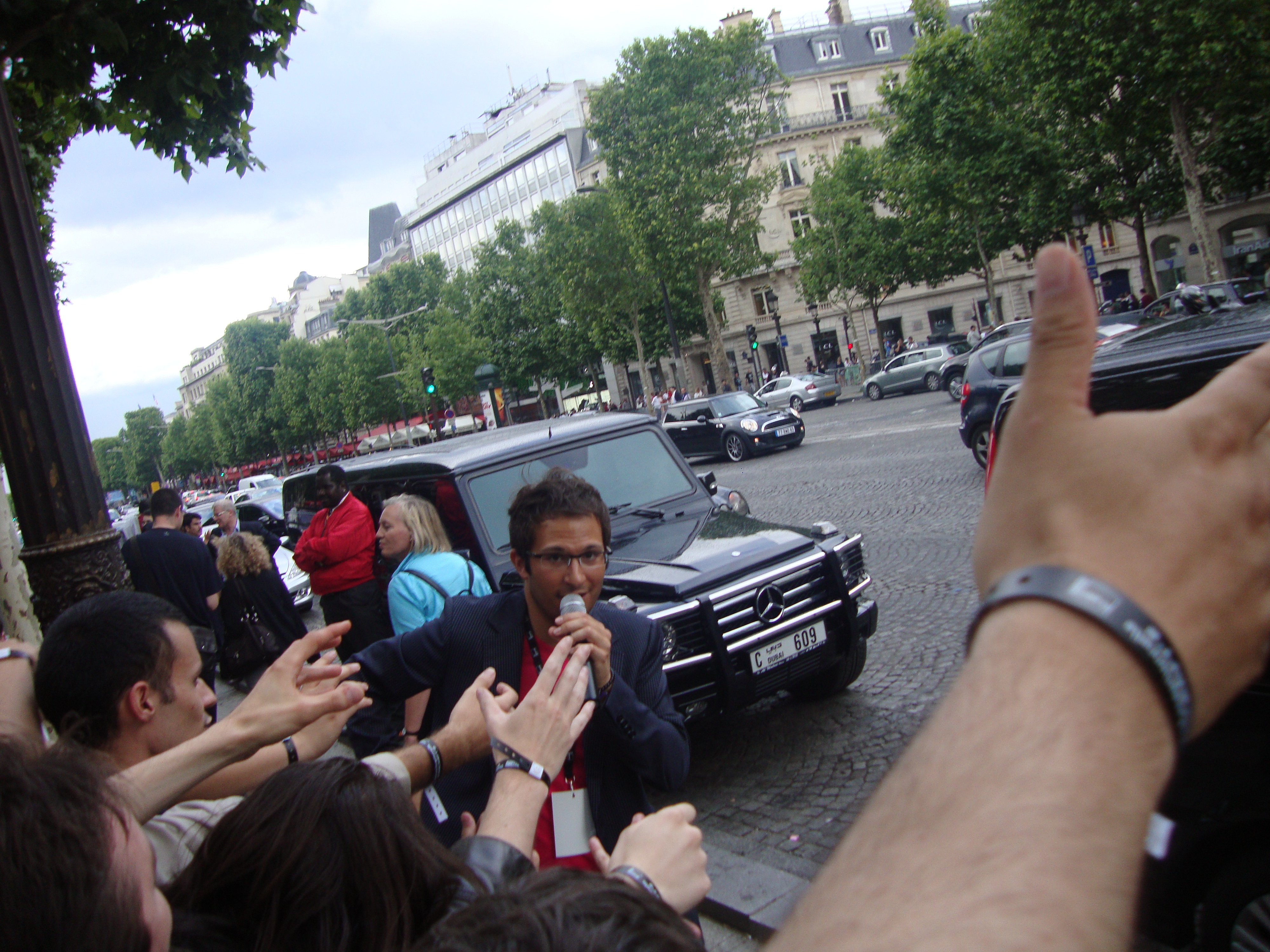21h50, le cap des 10 minutes est passé. Browder fait son apparition au centre du promontoire devant le magasin, visiblement agréablement surpris de l’accueil français. A peine le temps de récupérer quelques dernières cartes et d’être interviewé par une autre équipe, que le compte à rebours final est enclenché…