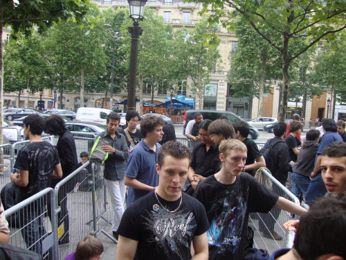 15h30, Après un rapide passage à l’appartement de l’ami chez qui je devais dormir, je me suis directement mis en quête de la Fnac des Champs Elysées. Même pour moi qui viens de loin, et qui par conséquent ne connais pas bien la capitale, difficile de rater l’imposant dispositif mis en place par le staff de l’événement.