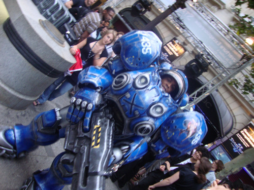 20h30, avec l’aide d’une charmante hôtesse (je suis définitivement tombé amoureux moi), le Marine en armure daigne se montrer à nous (comprendre : venir de notre coté de la file). Je saisis alors l’occasion pour me prendre en photo avec l’imposant costume.