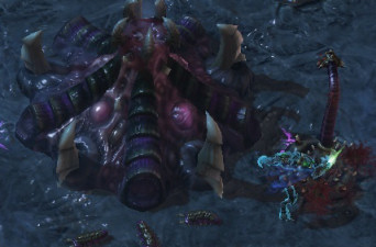 Quand c'est fait ramenez Zeratul et allez vers le Sud pour trouver la seconde couveuse. Faites attention il y a un ultralisk enterré qui tentera de vous surprendre. Tuez le vigilants avec les traqueurs, si vous les mettez au bord du mucus ils pourront tuer le vigilant tranquillement. Puis avancez pour faire surgir l'ultralisk et utiliser la prison du vide sur lui pour le tuer tranquillement. Ensuite un transfert de Zeratul et une prison sur le sporuleur et voilà c'est réglé. Revenez sur vos pas et allez cette fois au Nord. Ici il y a un piège avec de nombreuses unités enfouies alors tuez le vigilant puis avancez doucement pour en faire sortir quelques unes et les détruire puis reculez. Faites plusieurs fois pareil et le champ sera libre. Il y a ensuite une rampe devant et derrière il y a des aiguillons déracinés qui sont entrain de rejoindre leur position. Donc montez la rampe et tuez les aiguillons avant qu'ils ne prennent position.
