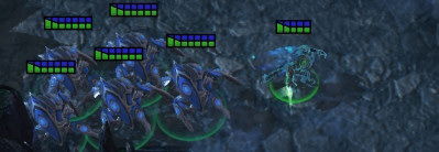 Si les traqueurs se font toucher, ils perdent d'abord le bouclier et non pas des points de vie. Vous allez devoir utiliser cet avantage et bien laisser vos unités recharger leur bouclier entre deux phases de combat sinon vous allez rapidement les perdre. C'est bien sûr pareil pour Zeratul et c'est comme ça que vous devrez faire le HF "Pas vu, pas pris".