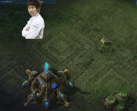 Si vous avez vérifié votre base principale après votre premier portail et qu'il n'y avait pas de batiments cachés, ça veut dire qu'il est parti pour un portail proxy [faire ses bâtiments de production dans ou devant la base ennemie]. N'ayez crainte, car cet ordre de construction à 10/10 est plutot fort contre deux portails proxy. Envoyez votre sonde-éclaireur près de votre base pour trouver les portails, et continuez simplement à produire des zélotes avec poussée temporelle. Une chose importante est d'envoyer votre premier zélote dans la base ennemi (il n'aura que des sondes pour la défendre), et profitez du passage resseré que vous avez créé avec vos portails. Continuez simplement à gagner du temps – votre premier zélote fera beaucoup de dégats à son économie. Prenez quelques sondes pour aider les zélotes si nécessaire. Vous finirez par prévaloir, puis par passer à l'offensive et détruire son proxy. Euh... maintenant il fait une forge. Je le vois faire trois portails. Eh ! Il fait le build portails à 10/10 !