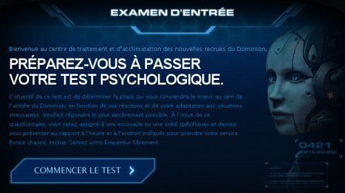 Examen d'entrée (jeu) : http://eu.starcraft2.com/dominion/entrance-exam-intro.xml