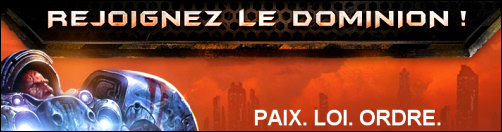 "Le Dominion combat pour la survie de notre civilisation ; la survie de notre espèce elle-même. Les citoyens tels que vous peuvent apporter leur soutien à l’humanité en s’engageant dans les forces inébranlables de la machine de guerre du Dominion. Passez votre test psychologique, rejoignez nos rangs et apportez votre contribution à la campagne de propagande. Méritez votre place dans l’Histoire !"