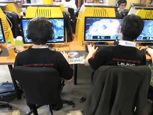 J'entre dans la salle, ça sent les APM ! Les joueurs sont concentrés et on peut entendre les clicks frénétiques des souris qui chauffent.