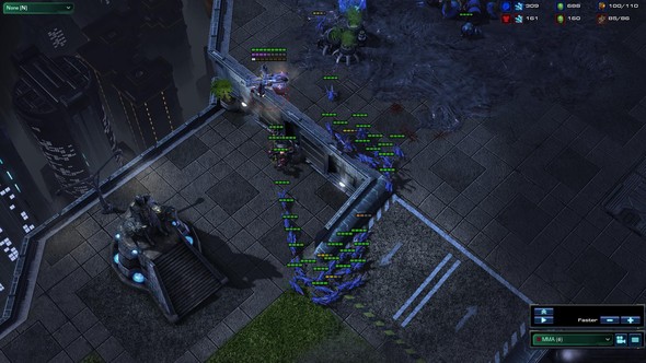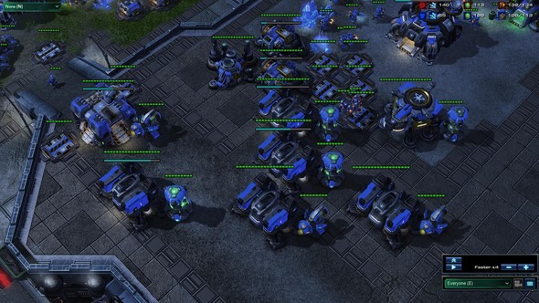 Vous devriez avoir 2 medivacs, 4 tanks, 20 marines, 2 faucheurs, et les stimulants. Si vous avez tout fait correctement, la partie devrait en être à environ 10 minutes.