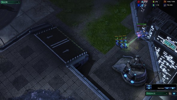 - Quand vous avez les boucliers de combat et quelques marines, utilisez-les pour mettre la pression sur votre adversaire. Vous aurez probablement du abandonner les tours Xel'naga aux zerglings venus les reprendre, retournez-y donc avec vos marines. Vérifiez la troisième base du zerg.