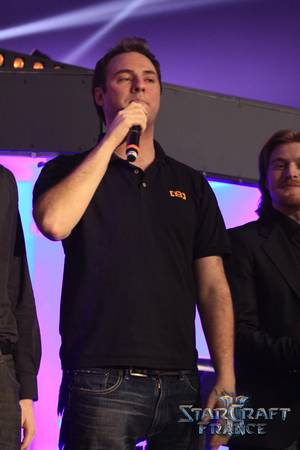 J'ai à peine le temps d’enchainer avec un Show Match sur Heart Of The Swarm, qui verra nos deux Frenchies Yoan « Tod » Merlo et Pierre « Sarens » Guivarch s’affronter sur un BO3. Pour commenter ce match 100% français, Kyan Khojandi se joint à Pomf et Anoss pour la première manche, avant d’être remplacé par Day[9]. Leur Frenglish est parfait (Day[9] ne découvre pas la langue de Molière, c’est une certitude !), les vannes sont là, ToD multi-task. Le public (protoss) est conquis.