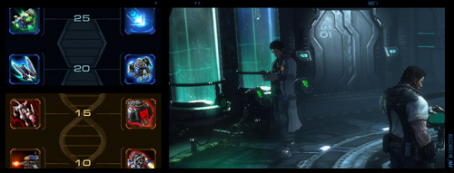 Lorsque vous utilisez l’option mercenaire, vous accéderez à un écran spécial affichant les unités que vous pouvez enrôler. En cliquant sur un mercenaire disponible, des informations supplémentaires apparaîtront, dont une petite vidéo en situation des capacités du mercenaire. Voici quelques unes des choses à savoir lorsque vous vous mettrez à la recherche de nouveaux mercenaires : * Type de mercenaire : dans l’écran Mercenaire, vous pourrez voir quels mercenaires vous pouvez engager à ce moment précis de la campagne. LaboratoireDès le début de la campagne, vous ferez vite connaissance avec Egon Stetmann, le technicien du laboratoire à bord de l’Hyperion. Grâce à son aide, et quelques enjambées de votre part, vous obtiendrez un nombre significatif d’améliorations pour votre armement et vos capacités tactiques. Pour utiliser ces améliorations, vous devrez acquérir des points de recherche zerg et protoss en complétant des objectifs bonus durant les missions de la campagne individuelle. Une fois que vous aurez mis de côté assez de points, vous pourrez les utiliser en cliquant sur la console de recherche dans le laboratoire puis consulter les bâtiments, unités et améliorations tactiques disponibles. Tout au long de la campagne, Stetmann vous précisera de quoi il a besoin pour créer ces améliorations.