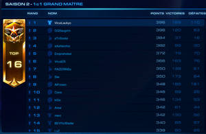 Cocorico puisque c'est Laukyo qui occupe la première place pour le moment ;) Vous pouvez consulter le classement entier sur Bnet dans la section "Ligues et classements" / "Grand Maître".