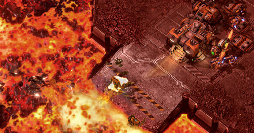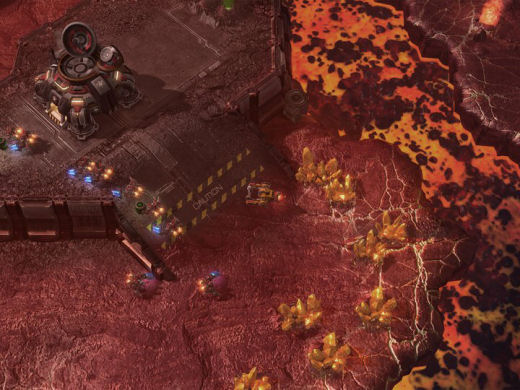 La carte reprend le même principe que dans la mission "Le jardin du diable" où le joueur doit récolter du minerai entre chaque montée de lave. Voici la description sur le blog de Blizzard : "Introduisant des éruptions de lave et des planques de minerais que vous pourrez collecter, Marée de feu est une carte de 3c3 qui combine un grand nombre d’éléments thématiques tirés de l’épique mission solo de la campagne « Le jardin du diable ». À l’instar de cette mission, le but de la partie est purement cupide, et la première équipe à atteindre le total de ressource requis gagne ! Les joueurs qui espèreront remporter la victoire sur cette carte devront travailler ensemble, en gérant prudemment la production de leurs unités et en protégeant les collecteurs vulnérables alors qu’ils feront face aux forces ennemies" Alors vous en pensez quoi ? Vous allez la tester ? Quelques images pour finir :