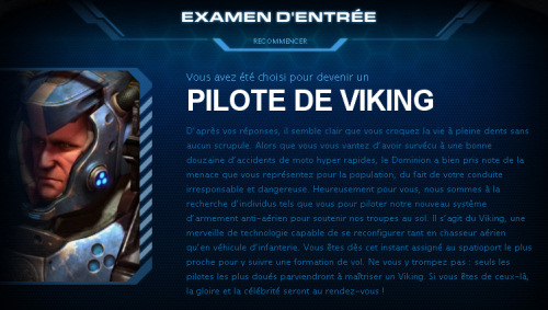 Si participer au concours demande un effort trop important vous pouvez tout de même passer l'examen d'entrée. C'est une série de questions pour l'examen d'entrée au Dominion et à la fin, en fonction de vos réponses, vous êtes engagé à un poste dans l'armée (Fantôme, marine, viking, etc).