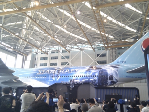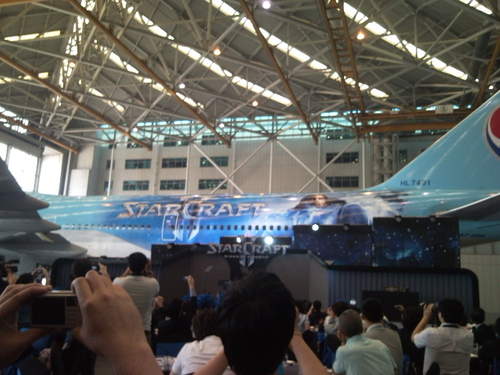 Blizzard ne rigole pas niveau marketing et veut clairement envahir le marché coréen. Aujourd'hui se tenait un évènement spécial Blizzard en Corée, en collaboration avec Korean Air, et Blizzard y a dévoilé ses plans pour la pays des pro-gamers. Quelques images de cet évènement se trouve à la fin de la news ! Tout ce qui suit ne touche que la Corée du Sud, pas le reste du monde, et est un résumé des annonces de Blizzard. - Il y a 2 avions de Korean Air aux couleurs de StarCraft 2 pour les 6 prochains mois, un pour les vols intérieur, un autre pour les vols internationaux. - Sigaty a annoncé que la beta allait redémarrée début juillet pour une période de 2 semaines environ. - Le 27 juillet, en même temps que la sortie du jeu donc, il y aura l'ouverture d'une beta ouverte à tous en Corée pour que tout le monde puisse tester SC2. - Il y a un partenariat avec Lotteria (une chaine de fast food coréenne). - Il y aura plusieurs prix de vente pour SC2 autre que celui de base qui offre le jeu en version illimité pour 69.000 won ($60-70). Il y aura un pass d'un jour pour 2.000 won et un autre de 30 jours pour 9.900 won. - Ceux qui souscrivent un abonnement à WOW pour 7, 30 ou 90 jours recevront gratuitement SC2. - Blizzard a fait don de 600 millions de won (environ 500.000 dollars) à une fondation qui s'occupe des étudiants/anciens joueurs pro. - Il y a eu un showmatch entre Garimto et Grubby et c'est Garimto, qui a joué activement à la beta, l'a emporté 2-0. Comme on peut le constater le marketing marche à fond et Blizzard veut vraiment que SC2 soit un succès en Corée, le pays de StarCraft. Les différents partenariats et prix de vente vont permettre au jeu d'avoir un maximum de publicité et d'attirer les joueurs. Blizzard va même offrir le jeu à ceux souscrivent un abonnement à WOW ! Et pour couronner le tout il y aura une beta ouverte spécialement pour la Corée pour que vraiment tout le monde puisse essayer StarCraft 2 ! La seule déception pour les fans du monde entier c'est l'absence d'une annonce pour une Star League SC2. Mais avec un tel partenariat avec Korean Air ce n'est peut-être que partie remise ;) > En parler sur notre forum